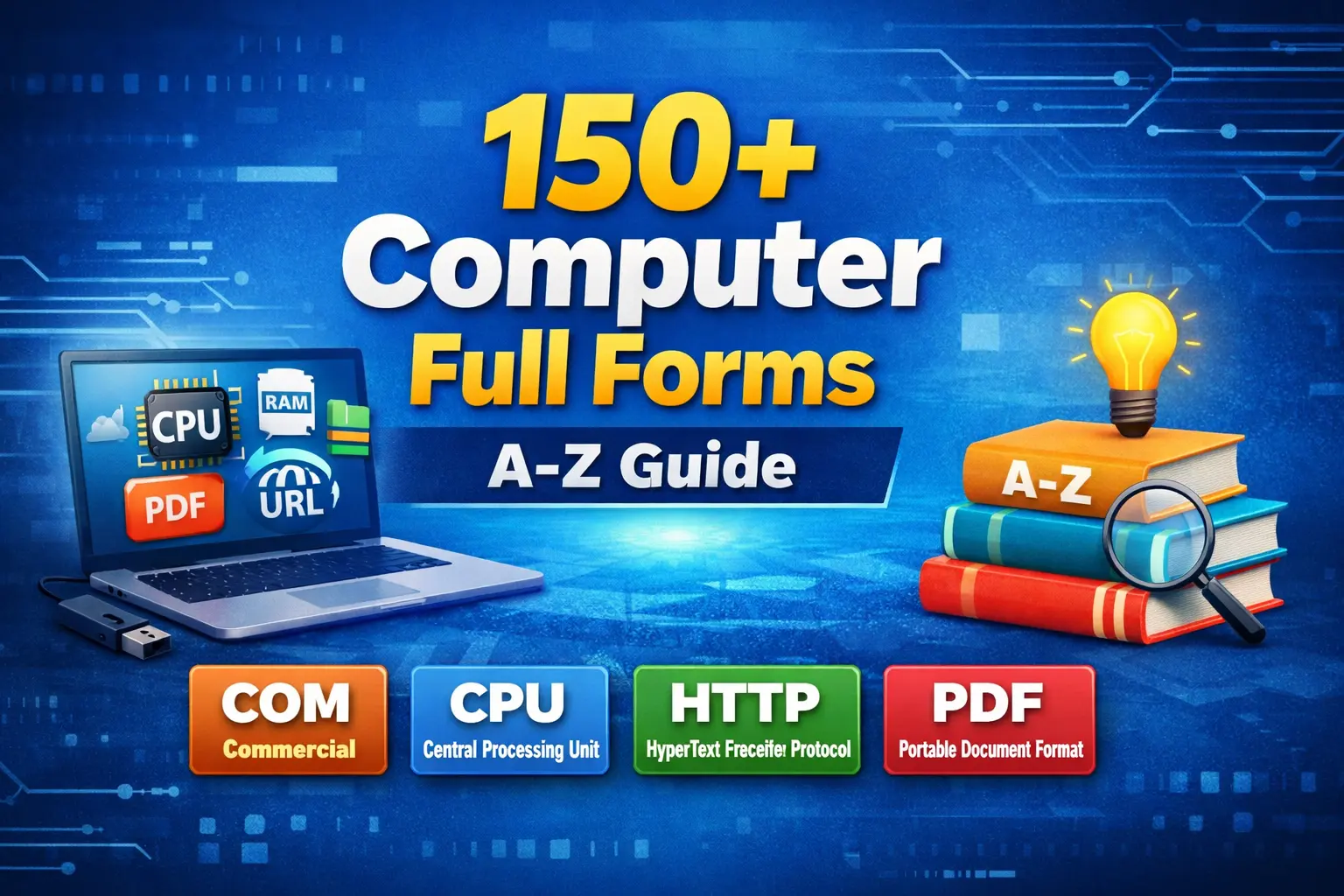In today’s digital world, understanding the 150+ computer full forms list (A–Z) with meaning is essential for students and professionals. This complete guide covers important terms like computer ka full form, COM full form, CPU, RAM, and many more in simple language.