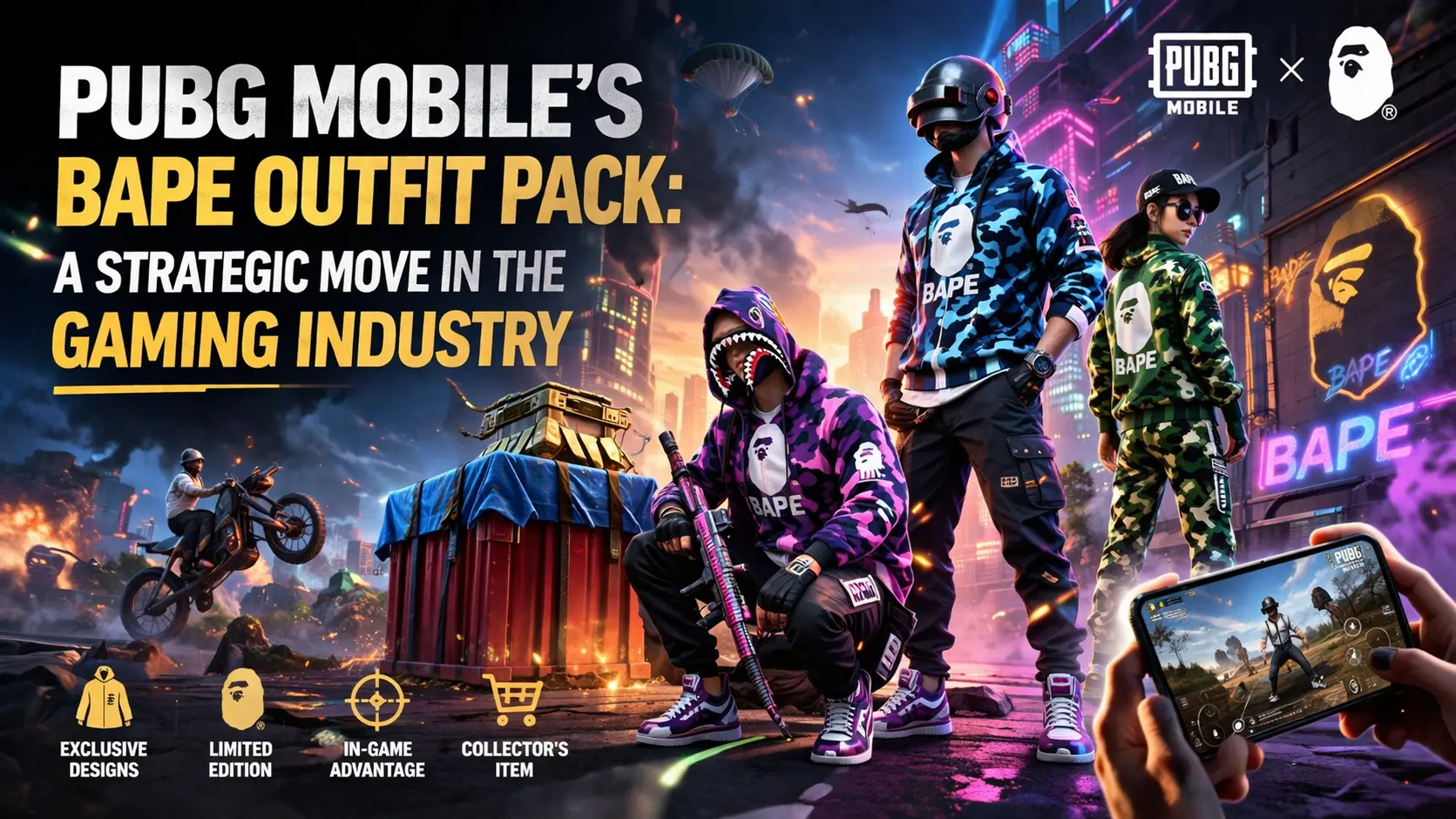 - What is the BAPE outfit pack, and how can I purchase it? The BAPE outfit pack is an exclusive in-game outfit pack available for purchase in PUBG Mobile. Users can purchase the pack using in-game currency or real money.